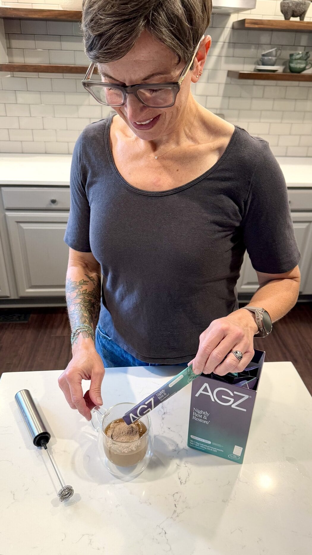 | Quality: As a registered dietitian, my professional opinion is that this is a solid product, designed specifically to support sleep with clinically studied key ingredients, third party testing, and a nutrition department that answers all of my questions. | On the sweeter side: I appreciate that AGZ doesn’t contain any added sugars or artificial sweeteners. All flavors are sweetened with stevia leaf extract, and the two chocolate flavors are sweetened with a mix of stevia leaf extract and monk fruit extract, which gives it a pretty sweet flavor profile. I tame this down a bit to my preference, by adding a splash of half and half to my glass. |