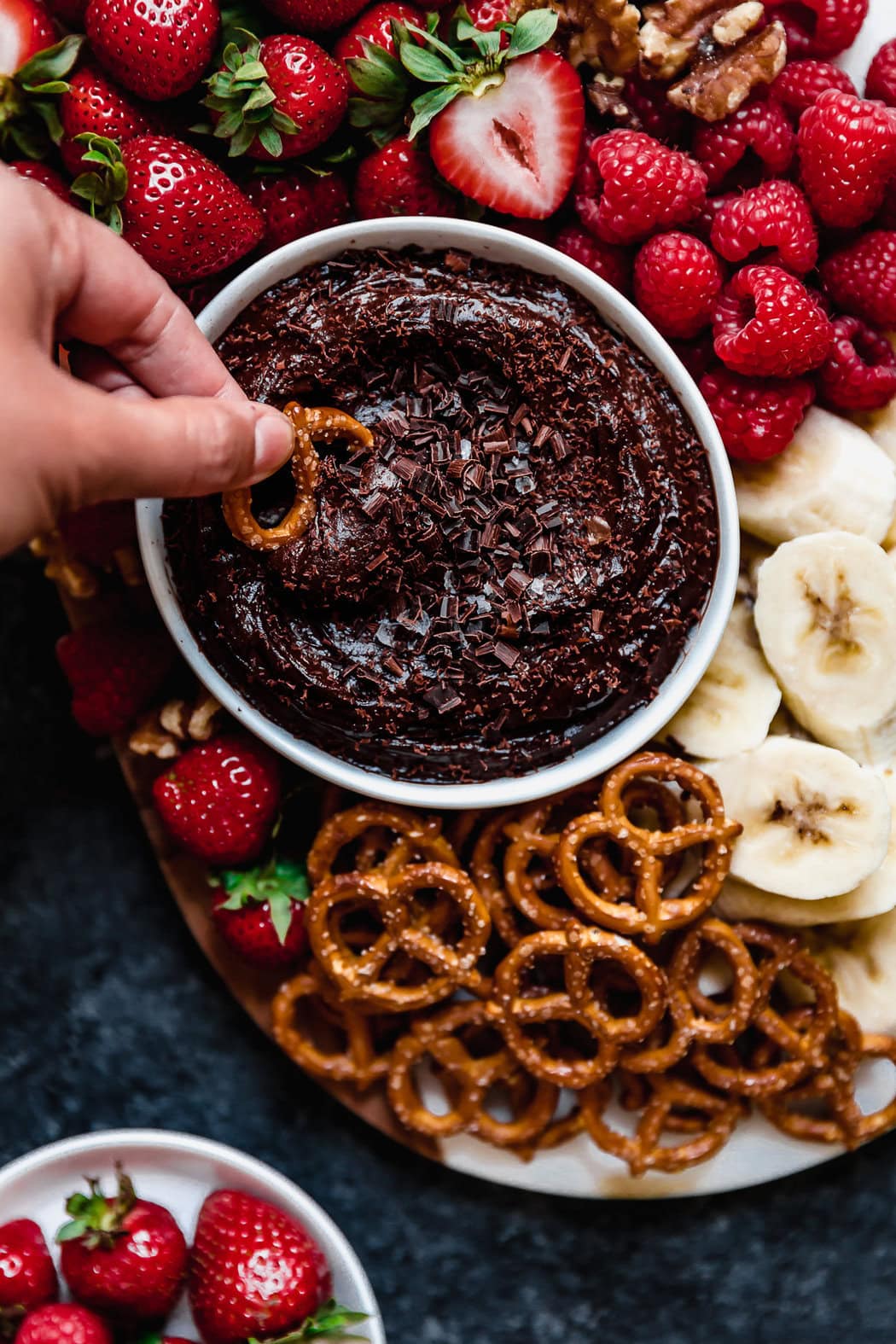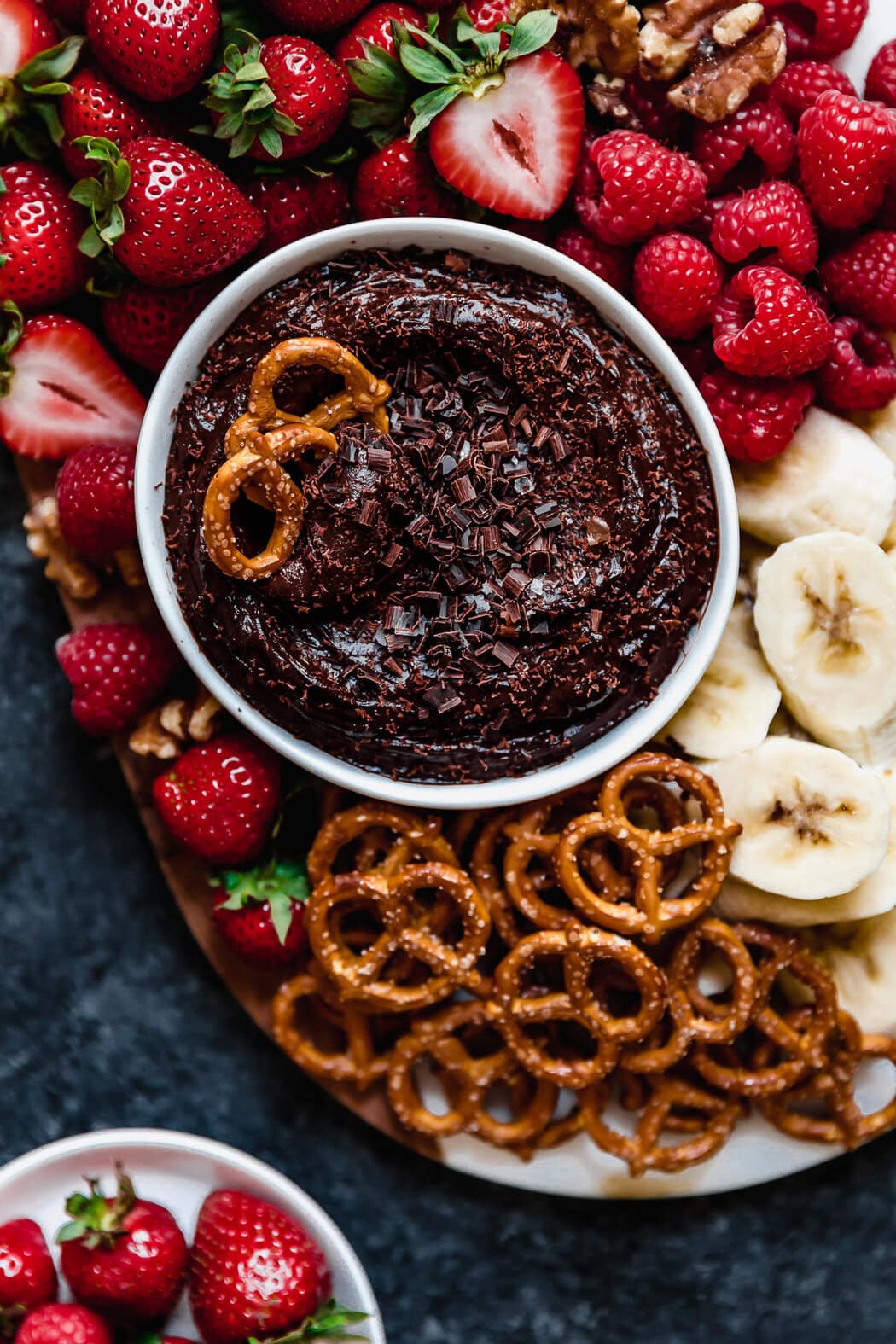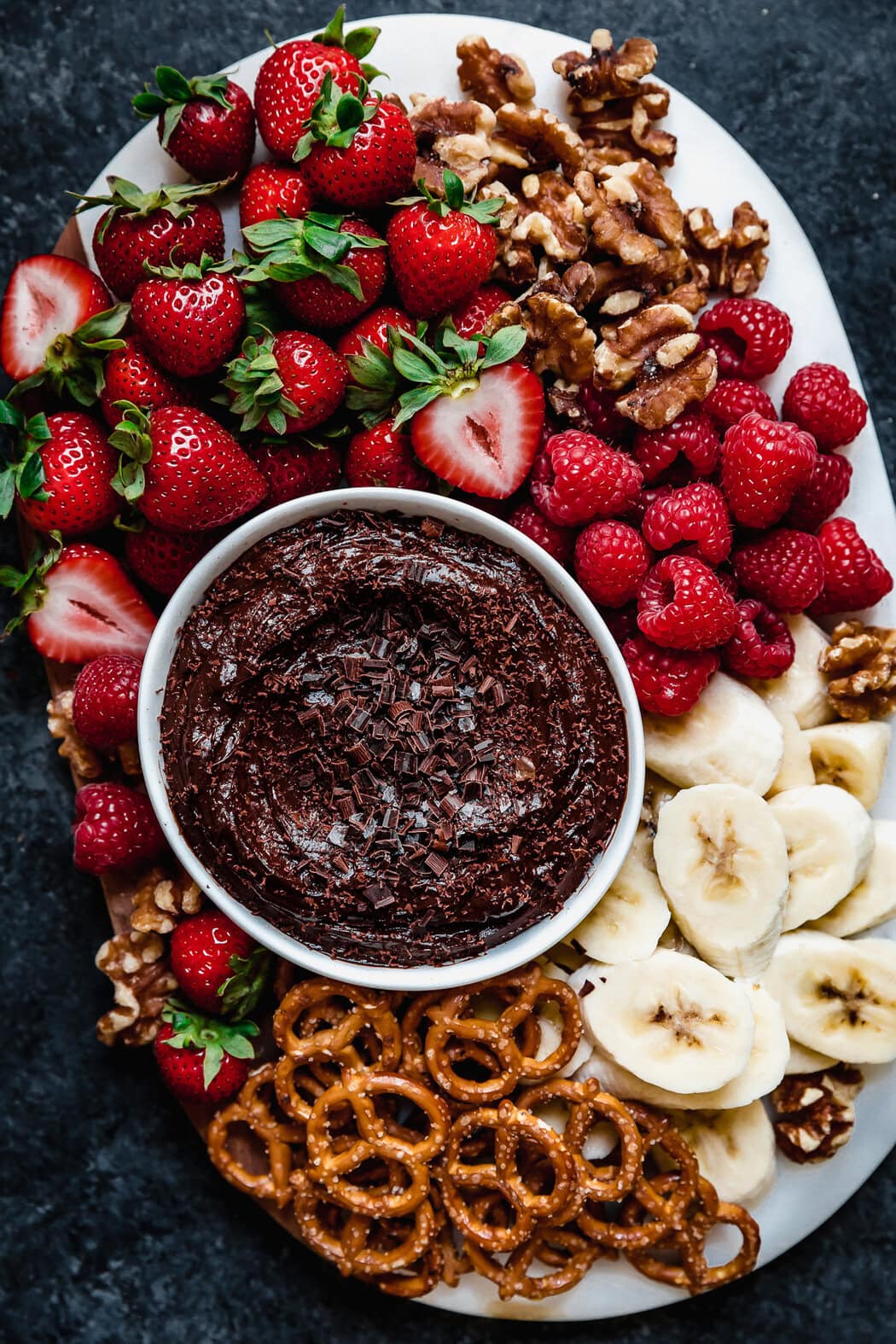 Fruit is abundant in nutrients and full of fiber but it lacks in protein or fat (except for avocados – that’s a special fruit). Pairing fruit with this lusciously creamy dip or another source of fat or protein, such as nuts or cheese, will help to enhance the absorption of fat-soluble nutrients, slow down the rise in blood sugars and in turn, will be more satisfying in the long run. Plus, who doesn’t love chocolate?