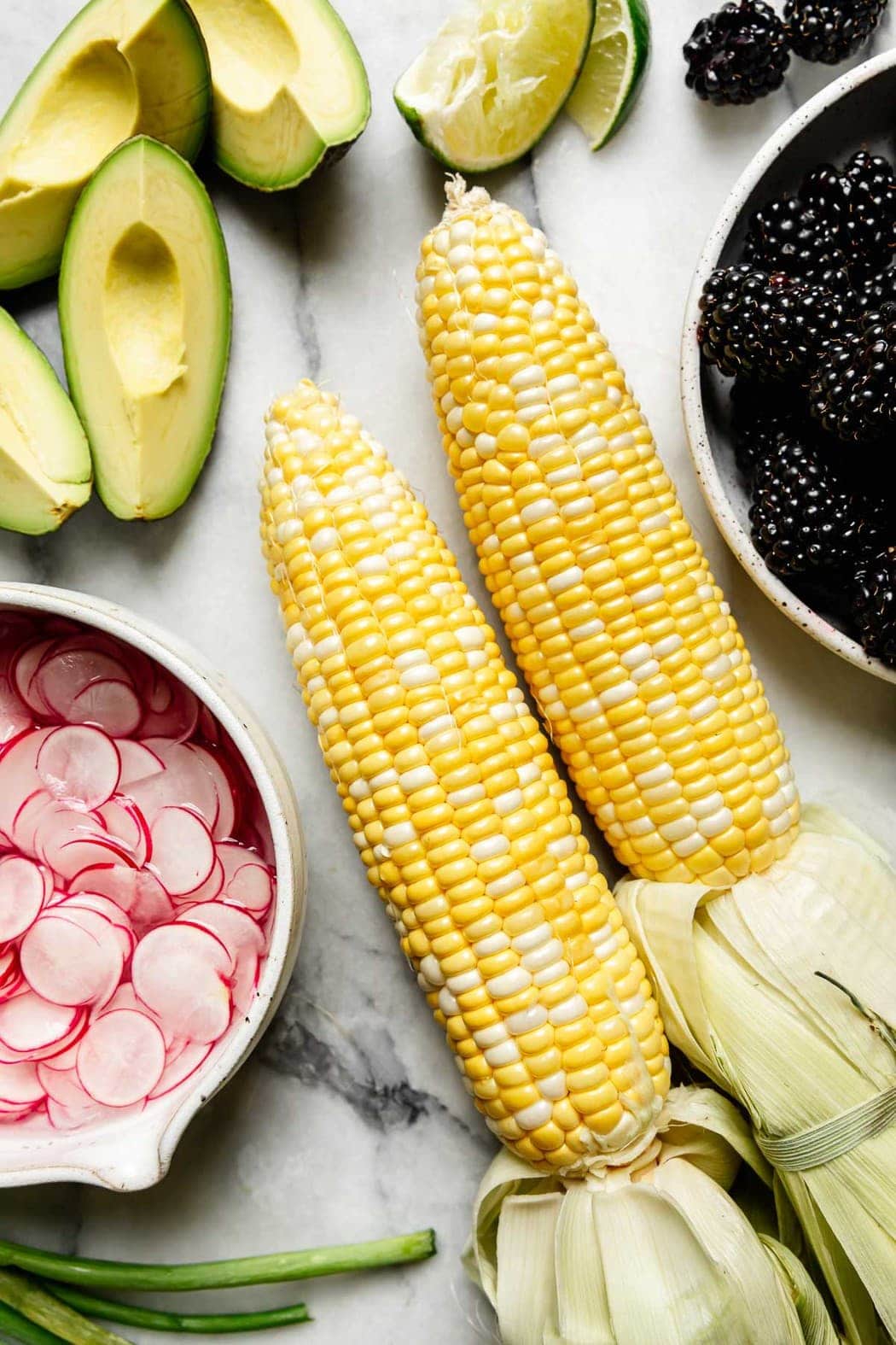 Ingredients to Make Grilled Corn Salad with Blackberries