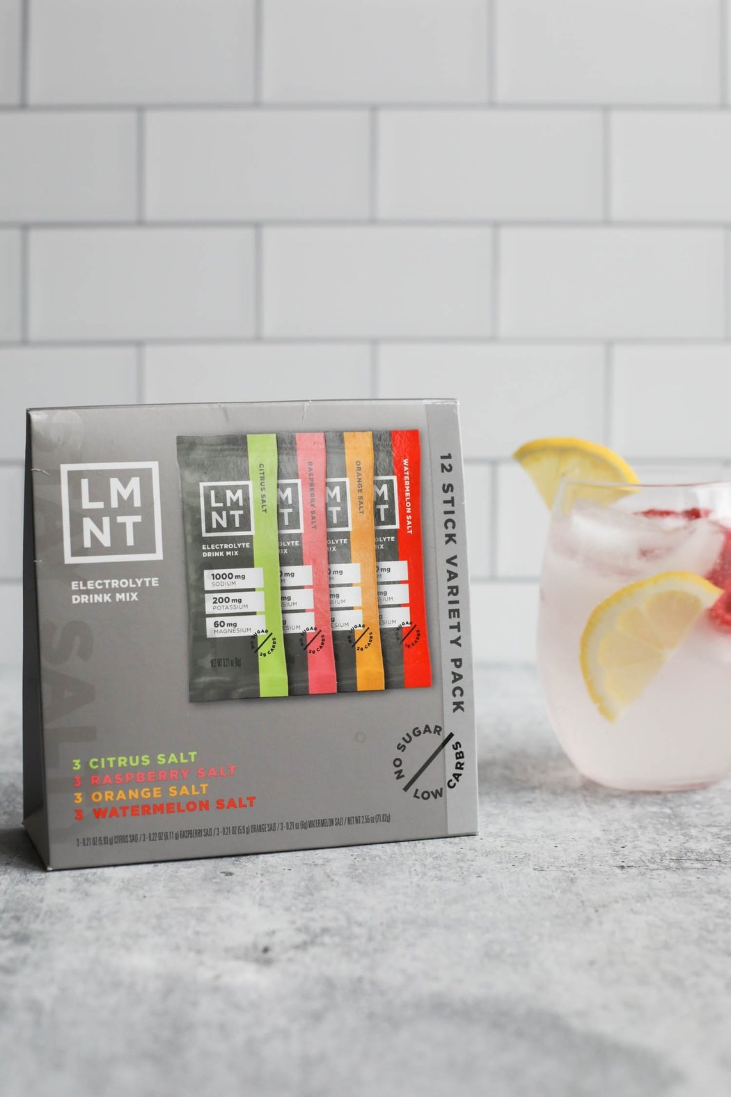 - I prefer LMNT over other electrolyte powders or tablets, like Liquid IV or Nuun, because it mixes easily with water and is sugar-free unlike typical sports drinks. I’ll sometimes mix 2 packets of LMNT Citrus Salt or Grapefruit Salt with 64 ounces of water in a big half gallon jar with cucumber slices and fresh mint. I store that in my fridge so it’s always ready to go.