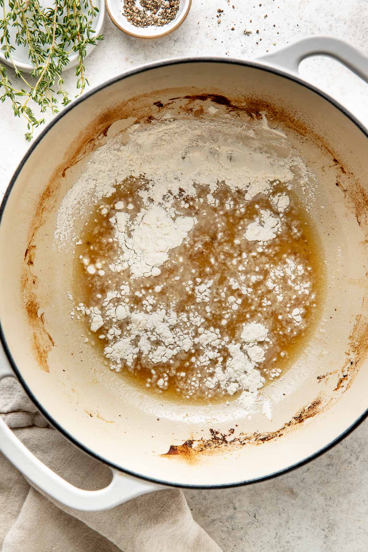 - Flour: I use all-purpose flour or a 1:1 all-purpose gluten-free flour, such as King Arthur 1:1 Gluten-Free Flour, to create a thick gravy with the leftover pan drippings. It’s the perfect addition to the meal and ensures nothing goes to waste.