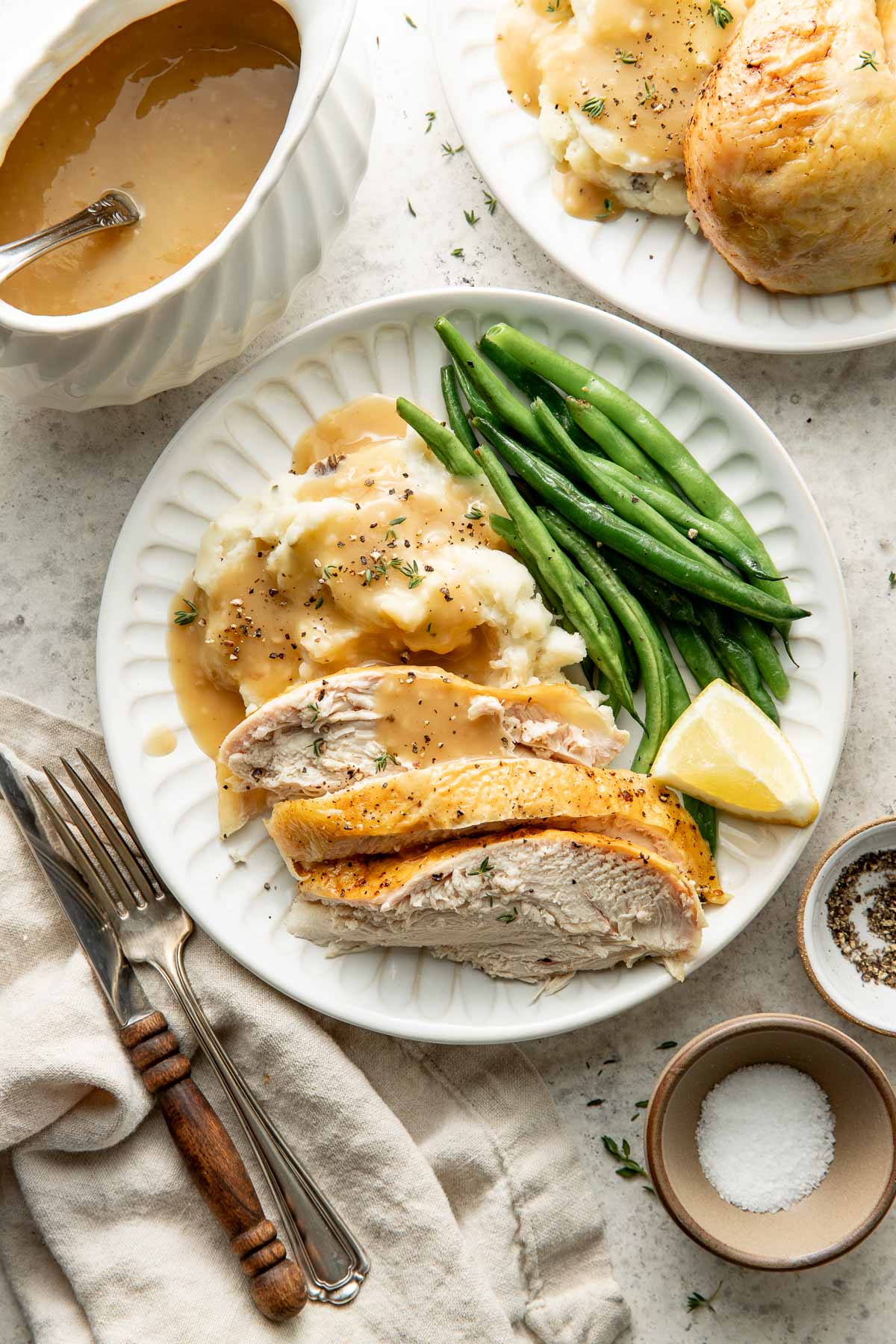 - Slice or pull the chicken from the bones and serve it with the optional gravy, if desired.