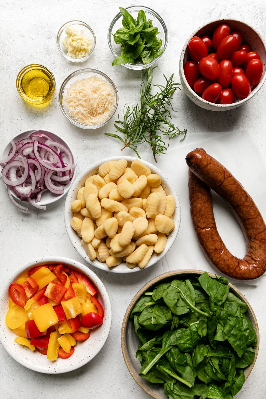 Ingredients to Make Sheet Pan Gnocchi with Kielbasa