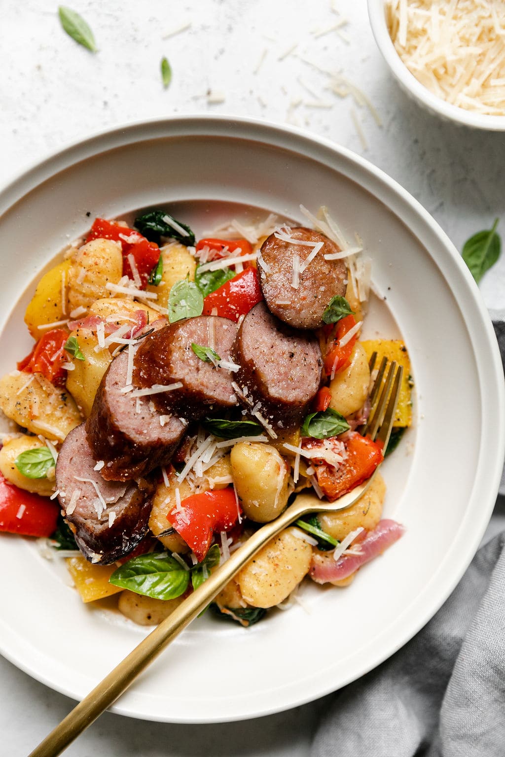 You’re going to love how easy this sheet pan gnocchi with kielbasa is to make. The kielbasa, gnocchi, and vegetables roast to perfection all at the same time. Using just one pan for the entire meal makes clean up easy and efficient.