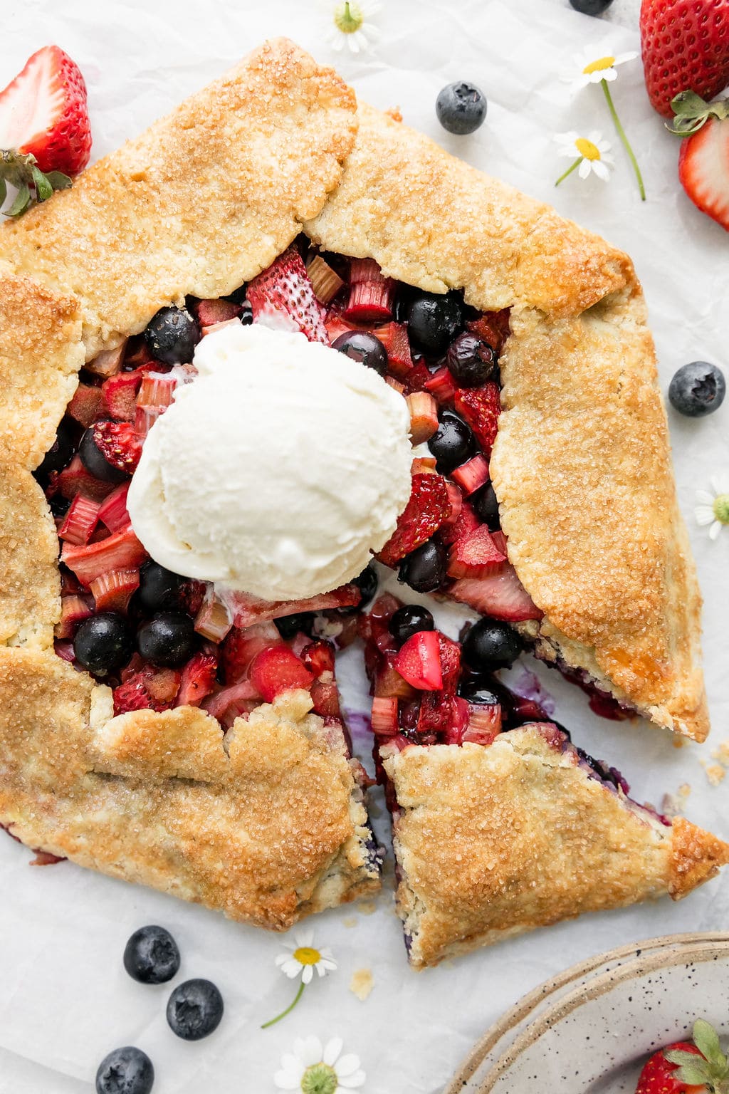 There nothing more beautiful than a strawberry blueberry galette with rhubarb to kick off the summer and to serve it up, here are our favorite ways: